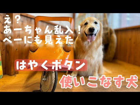 【あーちゃん乱入!】はやくボタンを早速使いこなすゴールデンレトリバー